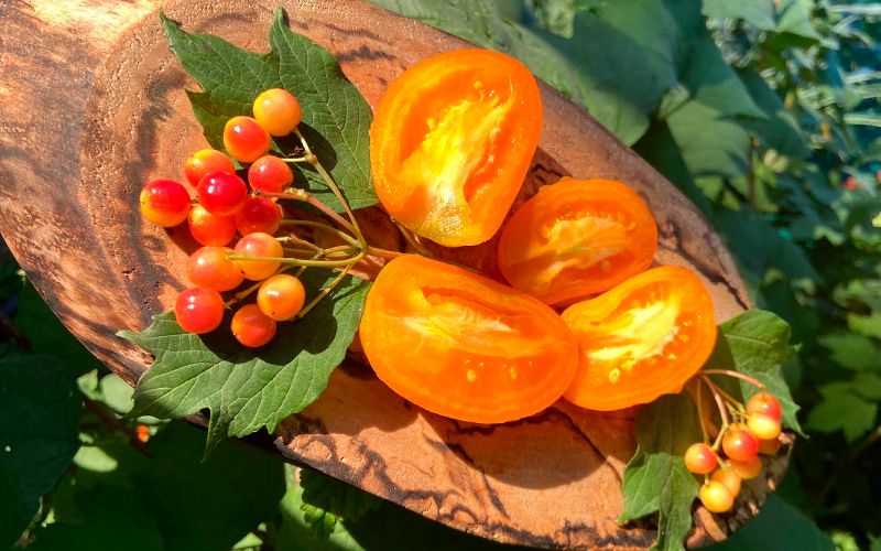 Томат Кандинский. Ммм... какой он оказался вкусненький, сочный, сладенький и кислинка есть. Кожица не тонкая, но и не толстая. На упаковке он жёлтый, на самом деле плоды рыжие/оранжевые. Томат высокорослый и весьма урожайный, вяжет веерные кисти, но не всё так радужно, температурные качели в начале роста передали его во власть коварной вершинке, из-за которой много плодов мне пришлось удалить. Сейчас вот ситуация выправилась. Подкармливала сульфатом калия под корень. Плоды повыше уже без чёрной попки, чему я очень рада.