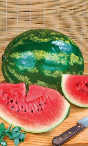 Невероятно урожайный, среднеранний сорт. Плоды тёмно-зелёные, округлой формы, выравненные, массой 6-11 кг. Мякоть рубиново-красная, нежная, мелкозернистая, медовая, сочная, с насыщенным арбузным ароматом.Ценность: стабильно высокая урожайность, многоплодность, повышенная транспортабельность, устойчивость к болезням и неблагоприятным погодным условиям...