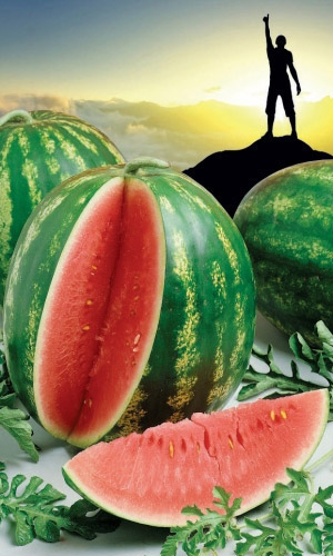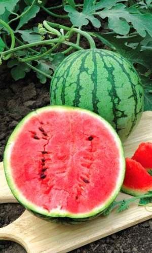 Самый высокоурожайный и высокотоварный гибрид. За счёт крупных, качественных и очень вкусных плодов обладает усиленной транспортабельностью и неприхотливостью к условиям выращивания. Плоды округло-овальные, массой 8-10 кг, выравненные. Мякоть ярко-красная, нежная, с очень высоким содержанием сахара. Мощная сила роста и «агрессивная» корневая система обеспечивают высокую урожайность, а крупные листья хорошо защищают плоды от перегрева...
