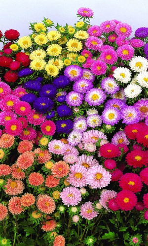 ОднолетнееОтносится к группе кустовых-срезочных астр. Растение пирамидальной формы, высотой 75 см, образует множество прочных упругих цветоносов. Многочисленные махровые соцветия белого, красного, абрикосового, голубого, желтого цветов, очень оригинального вида, 5-6 см в диаметре, расположены все примерно в одной плоскости. Язычковые лепестки расположены в 3-4 ряда вокруг жёлтой сердцевины. Одним из достоинств данной серии астр является высокая устойчивость к болезням и неблагоприятным погодным условиям. Астры этой серии отлично подойдут для создания ярких неповторимых клумб, одиночных и групповых посадок на газоне, для срезки. Можно выращивать в домашних условиях.