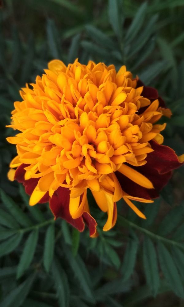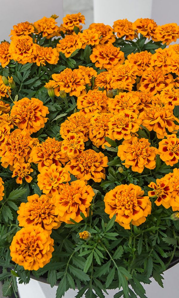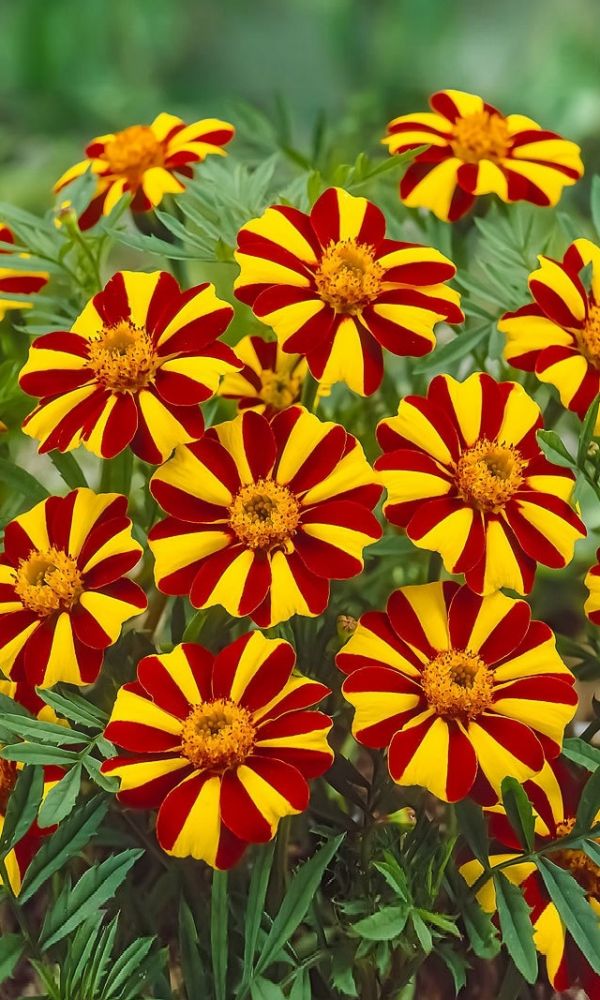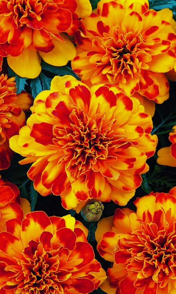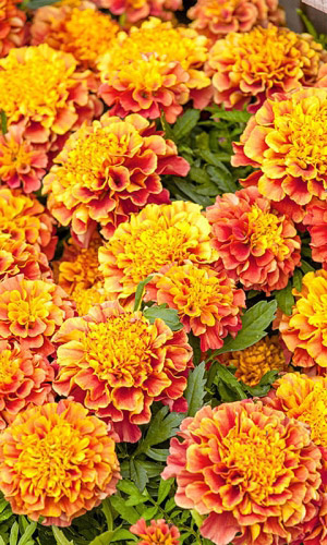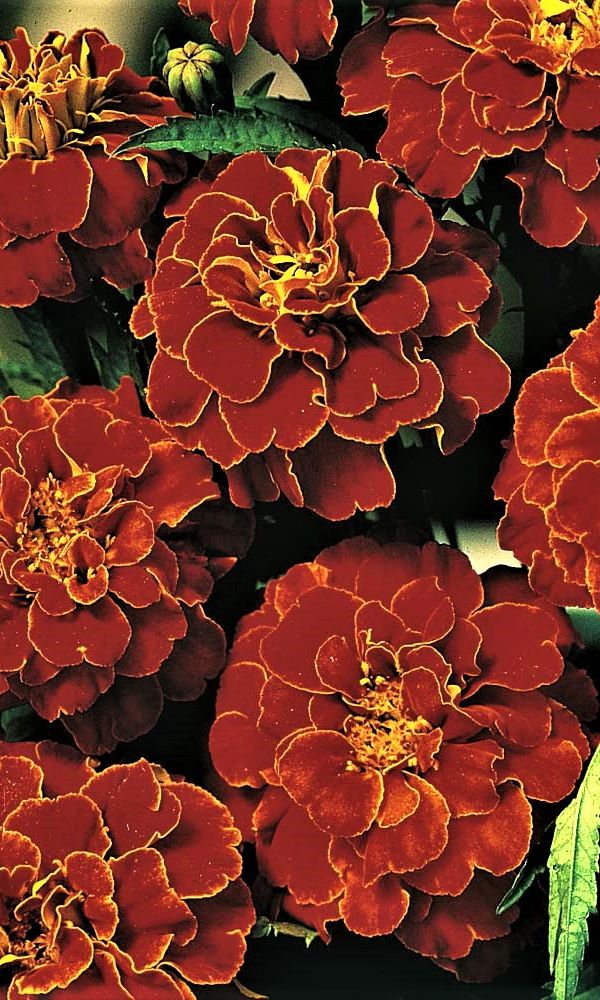 Бархатные соцветия изумительной красоты. Куст компактный, густо-облиственный, в период цветения весь покрывается яркими, двуцветными, оранжево-красными, с золотистыми краями цветками, собранными в махровые соцветия. Используют для клумб, рабаток, бордюров и украшения...