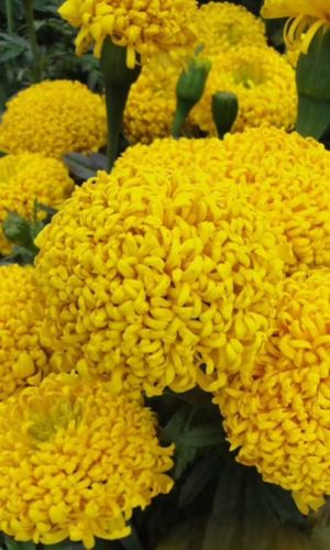 Роскошные, мощные кусты с многочисленными, густомахровыми соцветиями нежного, золотисто-жёлтого цвета, хризантемовидной формы. Бархатцы гармонично выглядят в любых цветниках, прекрасно держат форму (не разваливаются от дождя и ветра), переносят понижение температуры...