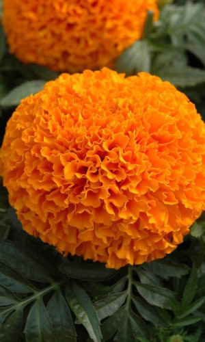 С очень крупными привлекательными оранжевыми цветками, высотой 90-100 см. Цветки собраны в махровые и шарообразные соцветия-корзинки, диаметром до 15 см. Растение теплолюбивое, засухоустойчивое. Предпочитает солнечные места. Цветет обильно с июня до заморозков. Используют в цветниках, на клумбах, бордюрах. Долго сохраняет свежесть в срезанном виде...
