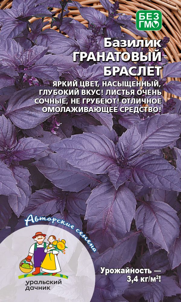 Высота до 60 смОдин из самых декоративных базиликов. Крупные, восхитительные зелёные листья контрастируют с квадратными в разрезе пурпурными стеблями и тёмно-лиловыми гроздьями соцветий. Соцветия по своей форме напоминают ещё не распустившиеся гроздья сирени с сильным ароматом. В...