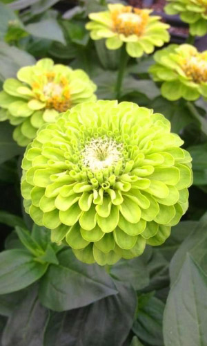 Неприхотливое однолетнее растение из семейства Сложноцветные, высотой 70-90 см. Соцветия георгиновидные, нежного салатово-желтого оттенка, диаметром 10-12 см. Цветение обильное с июня до заморозков. Цинния светолюбива, засухоустойчива и теплолюбива.Выращивают рассадным...