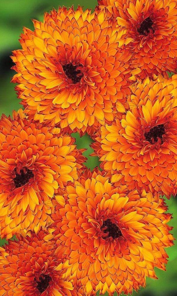 Очень красивое, обильно цветущее растение. На одном растении развивается до 35 соцветий. Соцветия - крупные, чрезвычайно эффектные, одиночные корзинки, контрастно окрашены. Краевые цветки оранжевые, ярко-красные, розовые, трубчатые-черные.Цветет обильно, с июня по октябрь...