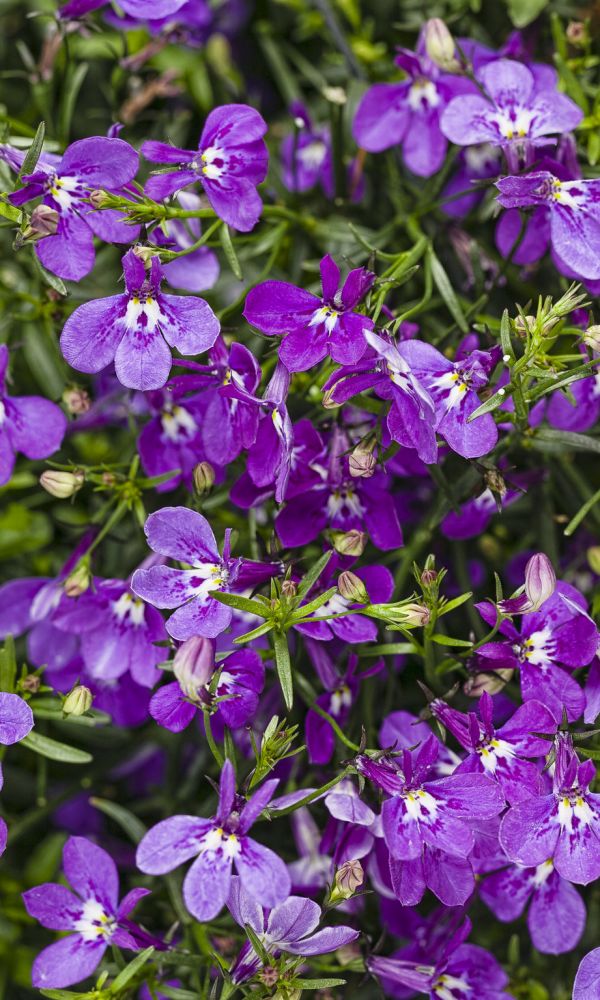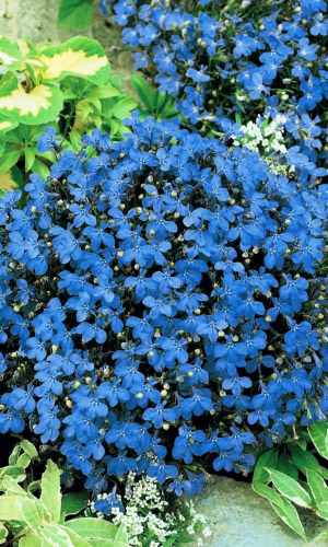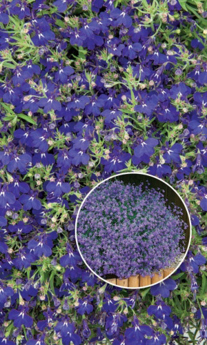 Серия ультраранних ампельных лобелий в мультигранулах. Потрясающе эффектный каскад тёмно-синих, как сапфиры, цветков с крупным жемчугом выразительных белых глазков. Листва с золотисто-бронзовым оттенком...