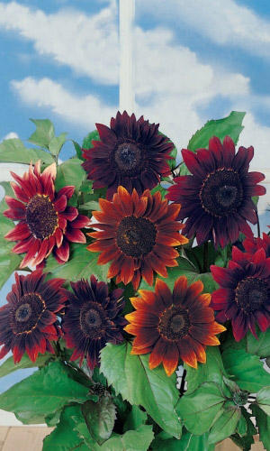 Весёлая смесь из подсолнухов разнообразных оттенков. Высота растений 80-200 см. Соцветия диаметром 10-30 см. Цветёт с июня по сентябрь. Используют для заднего плана высоких бордюров, декорирования заборов и хозяйственных построек, на срезку.Растение теплолюбивое, хорошо...