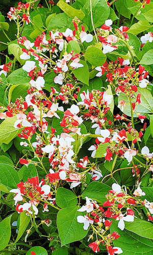 Великолепное вьющееся растение! Стебли тонкие, вьющиеся, поднимаются на высоту 2,5 м. Листья многочисленные, тёмно-зелёные. Цветы белые, лососево-розовые, оранжево-красные. Цветёт обильно с июля до сентября. Декоративную ценность представляют и плоды растения – крупные,...