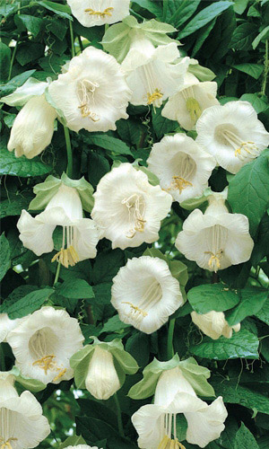 Необычное клумбовое растение. Образует многочисленные побеги длиной до 3-4 м. Цепляется за опору усиками, образующимися на листьях. Цветки колокольчатые длиной около 8 см, открываются зелеными, потом окрашиваются в белый цвет. Цветение обильное и продолжительное с июля и до заморозков...