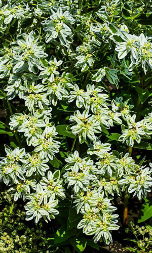 Это растение называют «снег на горах». В период цветения края верхних листьев белеют, что делает все растение очень декоративным. Прямостоячие стебли до 65 см высотой. Листья овальные, светло-зелёные, до 4 см длиной. Цветки мелкие, невзрачные, окружены прицветниками с широкими, белыми придатками. Посадками этих растений разделяют в цветниках плохо сочетающиеся окраски других растений. Используют для срезки. ...