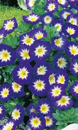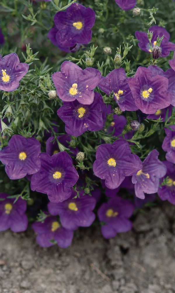 Красивое растение с плетистыми стелющимися побегами. Компактный кустик высотой до 25 см. Цветки сине-фиолетовые, широко открытые граммофончики с яркой жёлтой-белой серединкой, собраны на концах побегов. Открыты только в ясную погоду. Цветет обильно в течение июня -...