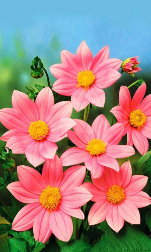 Цветок до 9 смЖизнерадостные низкорослые георгины! Растения компактные, высотой около 45 см. Соцветия розовые, диаметром 8-9 см. Используют в цветниках большими группами на клумбах. Прекрасный материал для срезки.