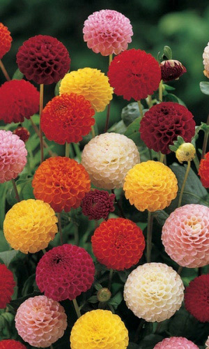 ОднолетнееЛидер среди клумбовых растений по яркости и длительности цветения. Помпонная георгина высотой до 100 см. Махровые цветы различных оттенков. Цветёт с июля по октябрь. Используют в цветниках большими группами, клумбах.