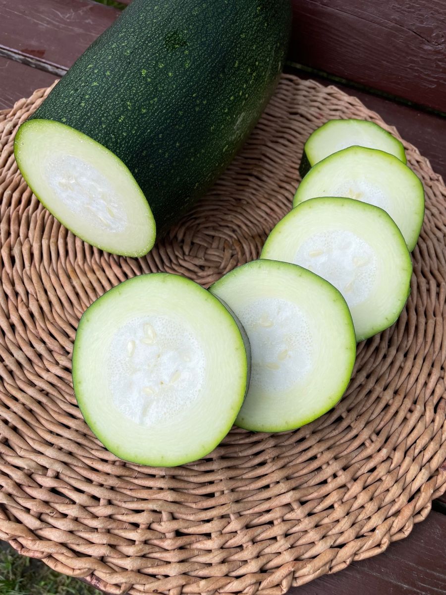 Раннеспелый, высокоурожайный, кустовой сорт. Плоды цилиндрической формы, выровненные, тёмно-зелёные, гладкие, глянцевые, массой до 1,2 кг. Мякоть белая, плотная, нежная, сочная.Ценность сорта: раннее и дружное и обильное формирование урожая, высокие вкусовые качества плодов. Рекомендуется для кулинарной переработки и консервирования...