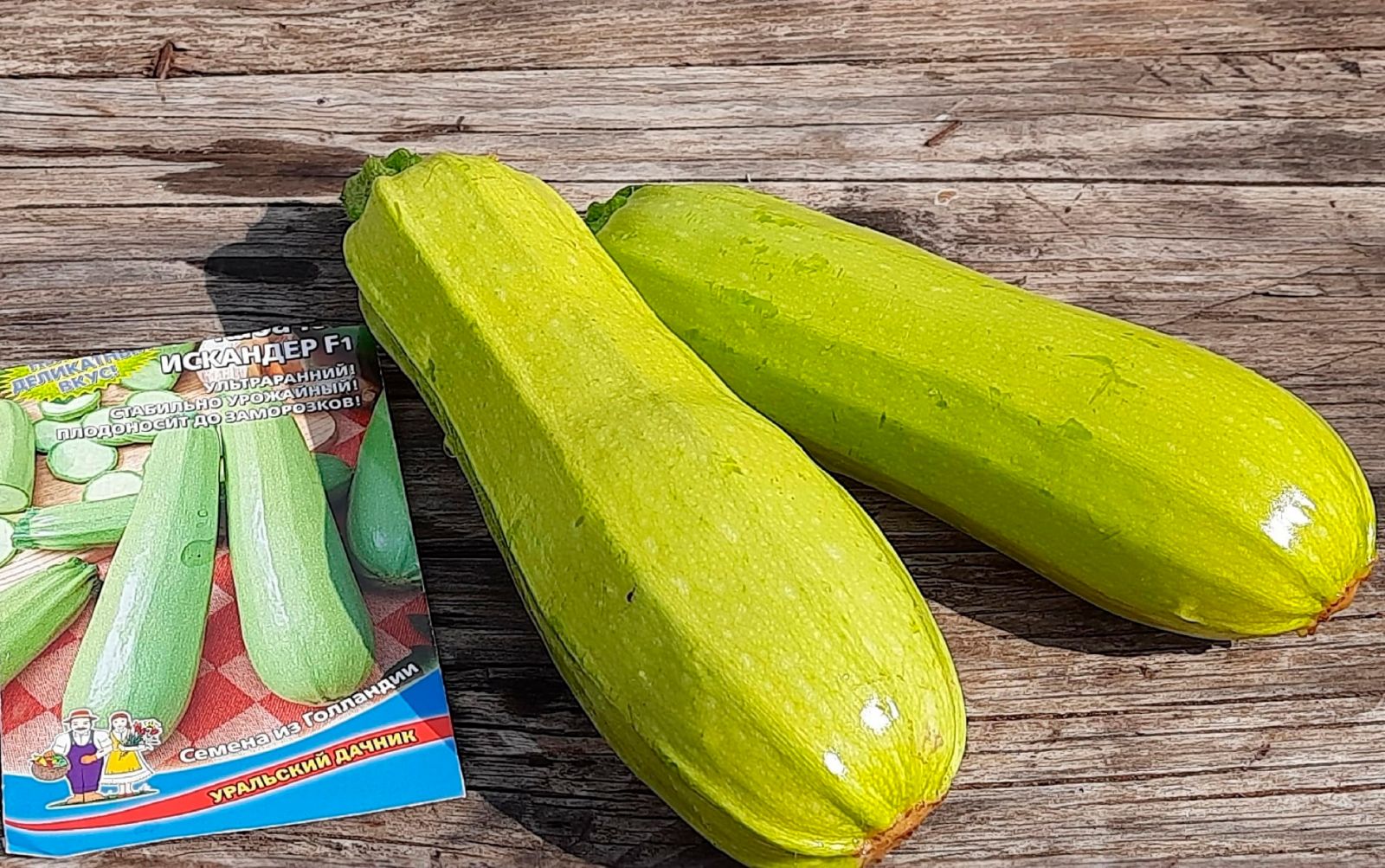 Плоды при перерастании не теряют своего нежного вкуса. Ранний высокоурожайный гибрид. Растение кустовое, компактное. Лист светло-зелёный до тёмно-зелёного, среднерассеченный, с пятнистостью. Плод цилиндрический с сужением к плодоножке, средней длины, светло-зелёный с белой пятнистостью. Масса 0,7 кг. Мякоть плотная, нежная. Вкус хороший. Рекомендуется для столовых целей и консервирования.
