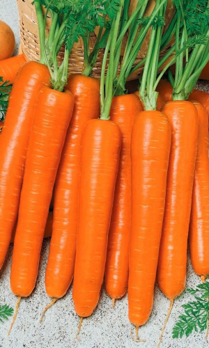 Суперурожайный сорт для хранения. Корнеплод цилиндрический, тупоконечный, интенсивно-оранжевый, длиной 15-20 см. Отменный вкус, повышенное содержание сахаров и каротина, сочетаются с длительным хранением без ухудшения качества, вплоть до нового урожая.Посев в конце апреля...
