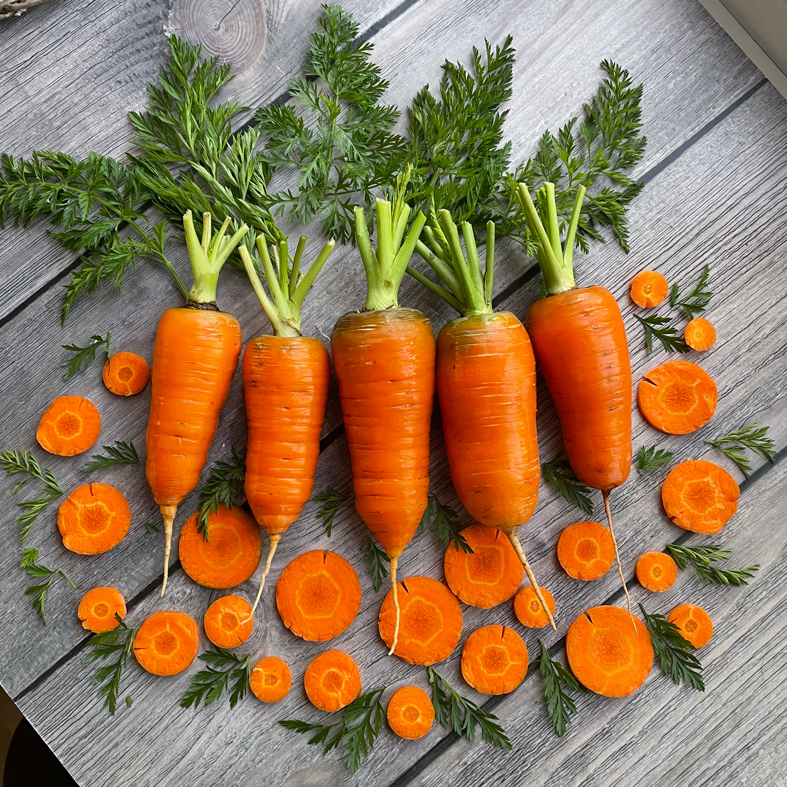 Стабильно урожайный, среднеспелый гибрид. Корнеплоды оранжевые, цилиндрические, с тупым кончиком, длиной 18-20 см, сочные, сладкие, отличного вкуса, с высоким содержанием каротина. Корнеплоды не перерастают и не растрескиваются, устойчивы к механическим повреждениям...