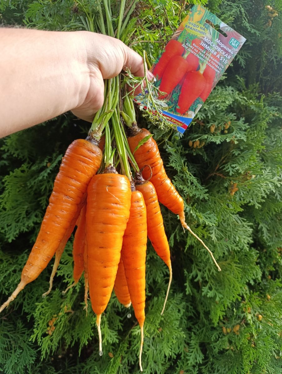 Лучшая для хранения! Корнеплоды крупные (до 150-170 г), ярко-оранжевые, конической формы, с тупым кончиком, длиной 13-16 см, очень вкусная. Устойчива к цветушности.