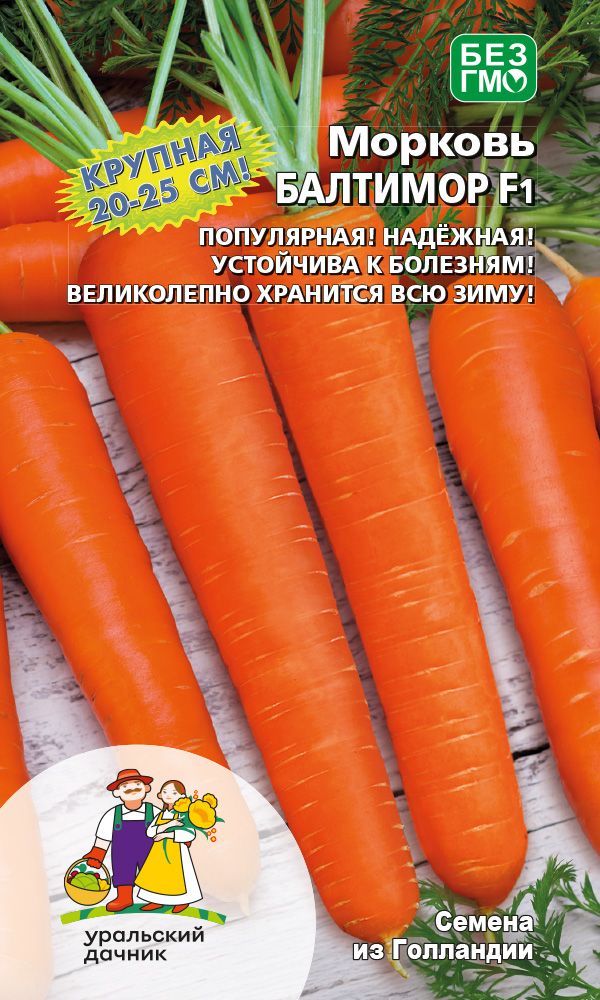 Одно из последних достижений селекционеров!Среднеспелый высокоурожайный гибрид. Период от всходов до уборки урожая 102 дня. Сортотип Берликум-Нантская. Корнеплоды цилиндрической формы, длиной 20-25 см, ровные, однородные. Масса 120-250 г. Вкусовые качества отличные. Листовой аппарат устойчив к заболеваниям. Рекомендуется для потребления в свежем виде и хранения. ...