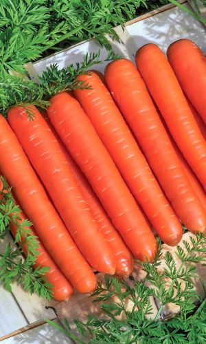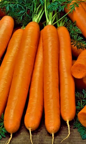Перспективный сорт с превосходным вкусом и высокой урожайностью – 6-8 кг/м2. Среднеспелый, формирует урожай за 100-110 дней от всходов. Корнеплоды нантского сортотипа, массой 110-170 г, с высоким содержанием сахаров и каротина. Поверхность гладкая. Сорт идеален для детского питания, подходит для длительного хранения...