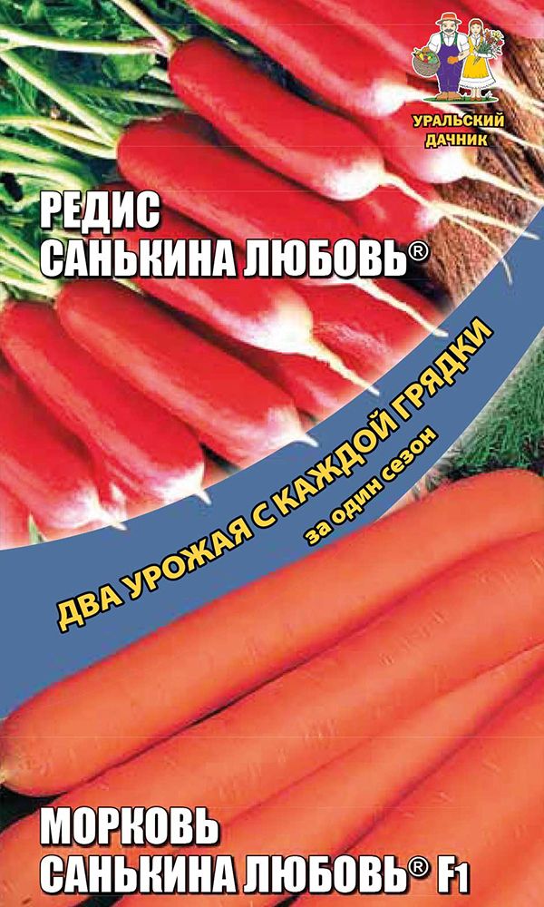 Редис САНЬКИНА ЛЮБОВЬ / 1 гРаннеспелый сорт Челябинской селекции, который отличается выдающимися вкусовыми качествами. Корнеплоды необычайно красивые, цилиндрической формы, красные с белым кончиком, крупные, массой 15-20 г. Мякоть нежная, сочная, более пикантного вкуса,...