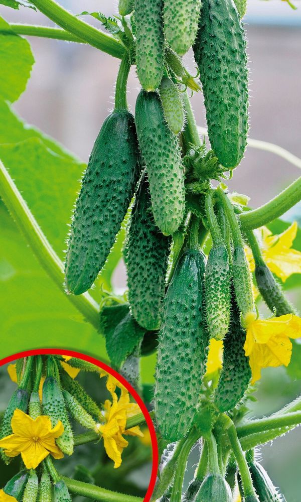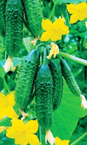 Самоопыляемый! Суперпопулярный пучковый гибрид! Холодостойкий, с длительным плодоношением, до заморозков! Крепкий, обалденно вкусный, хрустящий, без горечи! Создан для засолки! Плоды крупно-бугорчатые, белошипые, длиной 10-12 см, плотные, сладкие. От обилия плодов не видно листьев! Не перерастает, не бывает горьким, не образует пустот при консервировании и засолке...