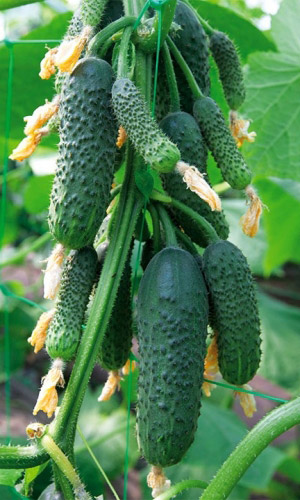 Раннеспелый, партенокарпический, пучковый гибрид женского типа цветения для открытого и закрытого грунта. Плоды цилиндрические, длиной 11-14 см, тёмно-зелёные, белошипые, крупнобугорчатые.Ценность: устойчивость к основным заболеваниям и хорошая адаптируемость к любым условиям выращивания, высокие вкусовые и товарные качества. Рекомендуется для употребления в свежем и консервированном виде...