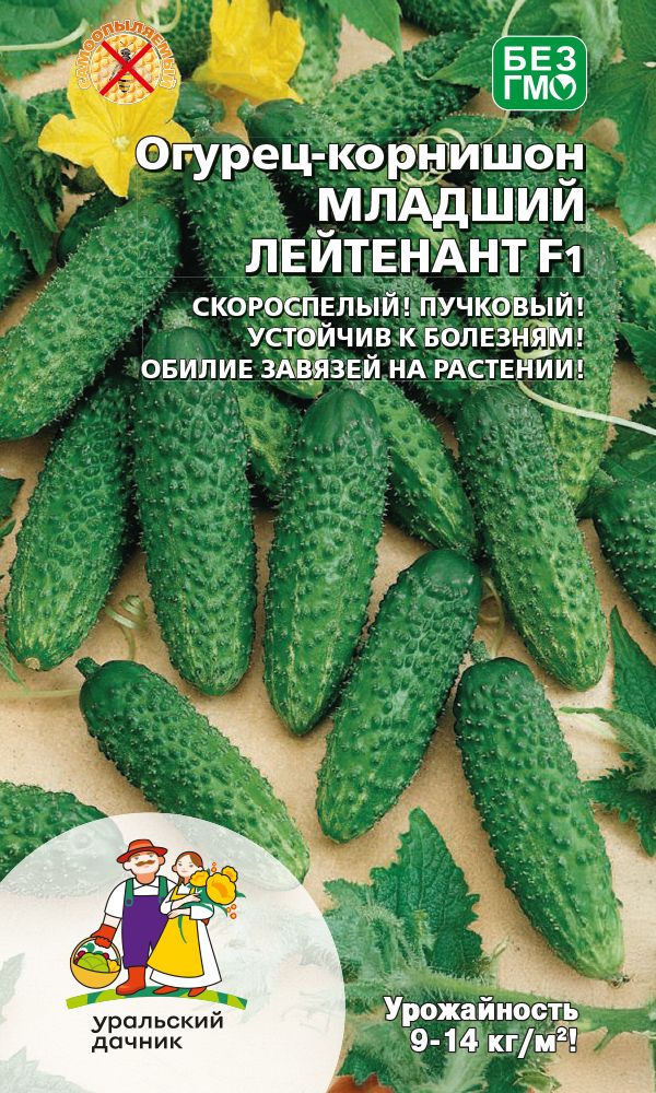 Самоопыляемый, раннеспелый, пучковый гибрид для засолки. Зеленцы выровненные по размеру, с многочисленными мелкими бугорками, длиной до 11 см, плотные, хрустящие, сладкие, не перерастают, не желтеют, не имеют горечи. Плодоносят до поздней осени!Посев: в открытый грунт в...