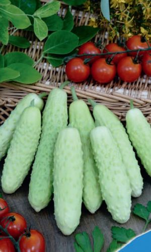 Новый среднеспелый гибрид с высокой степенью партенокарпии, для выращивания в теплицах и парниках. Зеленцы необыкновенно красивые, сливочно-белые, редкобугорчатые, длиной 8-12 см, плотные, сочные, с нежным вкусом и тонким огуречным ароматом. Украсят любую плёночную теплицу, не затеряются на грядке, освежат стол и придадут экзотический оттенок овощному ассорти. Используются в свежем виде и для консервирования...