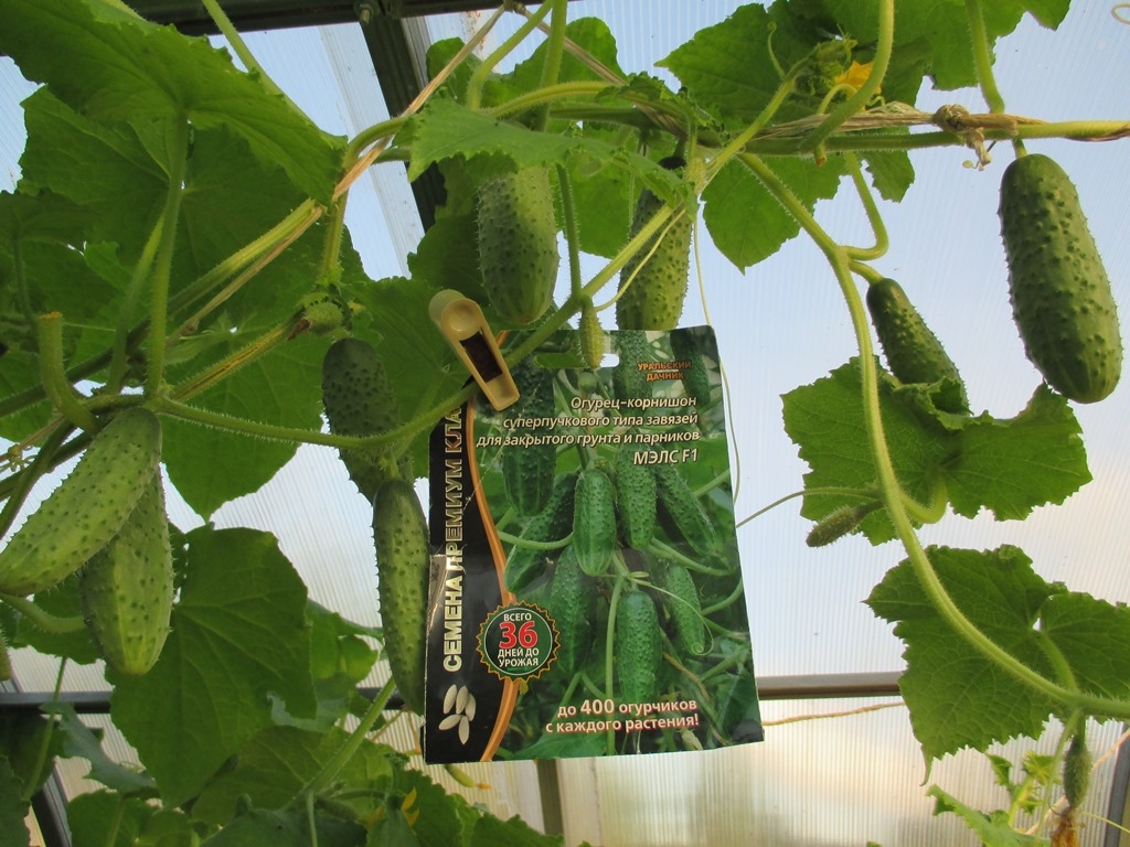 Ультраскороспелость МЭЛСа: от всходов и до первых огурчиков проходит всего 36 дней, причём это будет не одинокий грустный огурец, он будет сплошь увешан огурчиками, да притом какими: ярко-зелёными, длиной до 10 см, с частым, не колючим опушением. В каждом узле по 5-7 завязей, а в целом, с растения за сезон можно снять до 400-от огурчиков! И на вкус - просто фантастика, вне зависимости от ухода, они никогда не будут горькими; как правило, в них нет пустот; они всегда плотные, хрустящие, ароматные.
