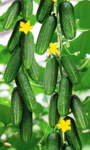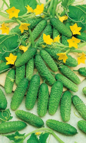 Среднеспелый, партенокарпический гибрид женского типа цветения, для открытого и защищённого грунта. Зеленцы цилиндрические, крупнобугорчатые, белошипые, длиной 9-10 см, отличного вкуса, без горечи, очень плотные, хрустящие, особенно хороши для засолки и...