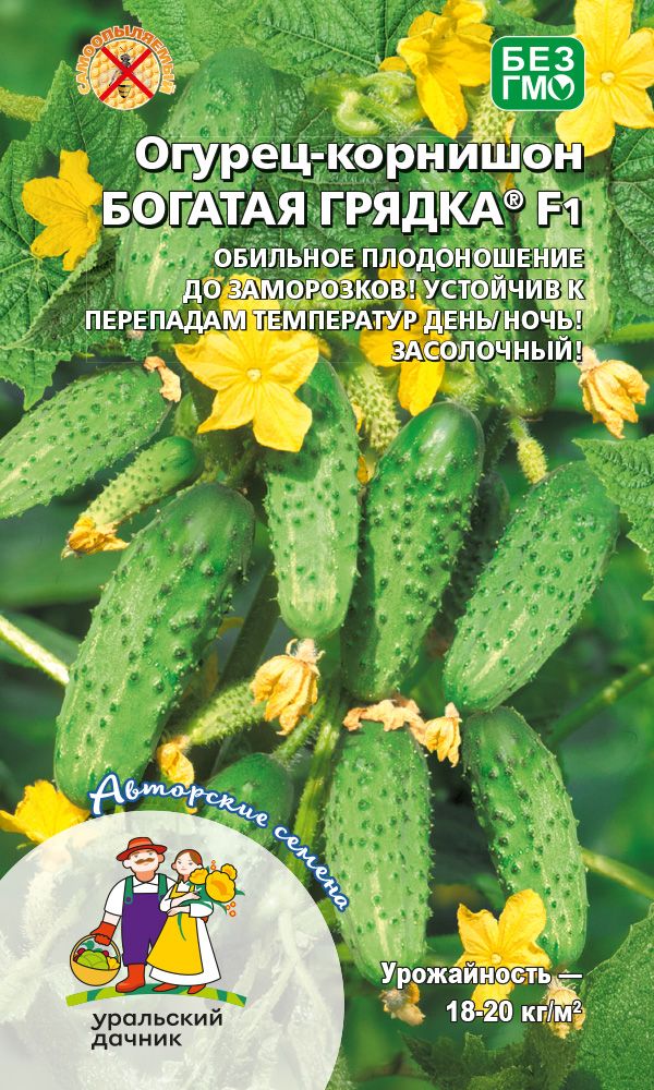 Новый, замечательный, среднеранний гибрид Челябинской селекции для открытого грунта, плёночных укрытий и теплиц. Самоопыляемый гибрид. Плоды тёмно-зелёные, крупнобугорчатые, без пустот, хрустящие, не горчит даже при нерегулярном поливе. Устойчив к основным вирусным заболеваниям огурца, легко переносят как жаркую погоду, так и внезапный холод. Всегда можно похрустеть свежими огурчиками и запастись ими на зиму, они идеально подходят для засолки и маринования...