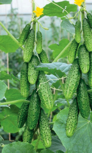 Скороспелый, высокоурожайный, партенокарпический гибрид для выращивания в парниках, теплицах и открытом грунте. Плоды цилиндрической формы, тёмно-зелёные, среднебугорчатые, белошипые, длиной 14-16 см, ароматные, сочные, хрустящие, без горечи. Вкусовые качества отличные. Ценность гибрида: стабильная урожайность, раннеспелость, высокие вкусовые качества свежей и консервированной продукции, устойчивость к болезням. Рекомендуется для потребления в свежем виде, засолки и консервирования...