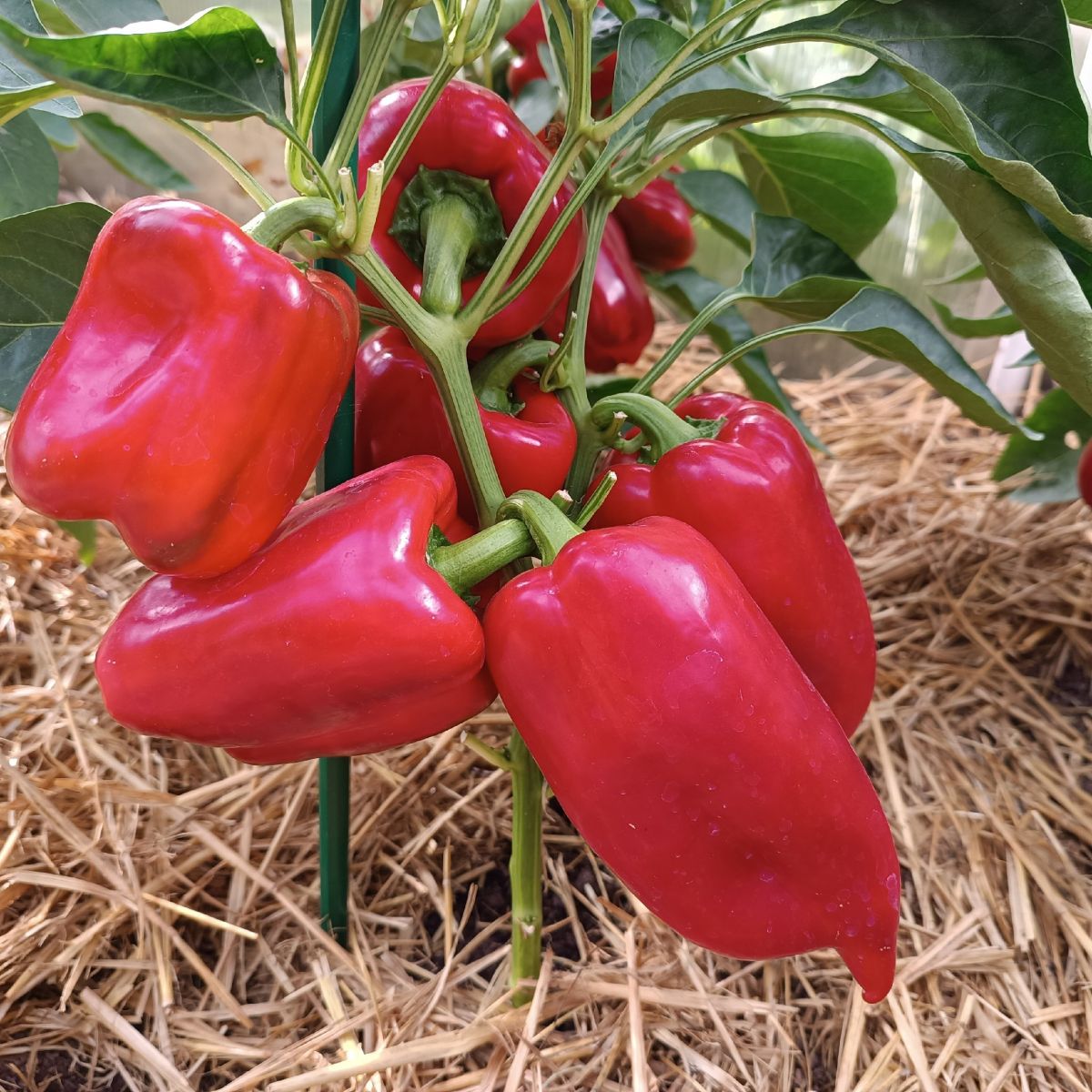 Раннеспелый гибрид для открытого грунта и пленочных укрытий. Растение высотой 65-75 см. Плоды крупные, кубовидные, красные, массой 150-200 г, толщина стенки 8-12 мм, сладкого, сочного вкуса. На растении одновременно созревает 10-12 плодов.