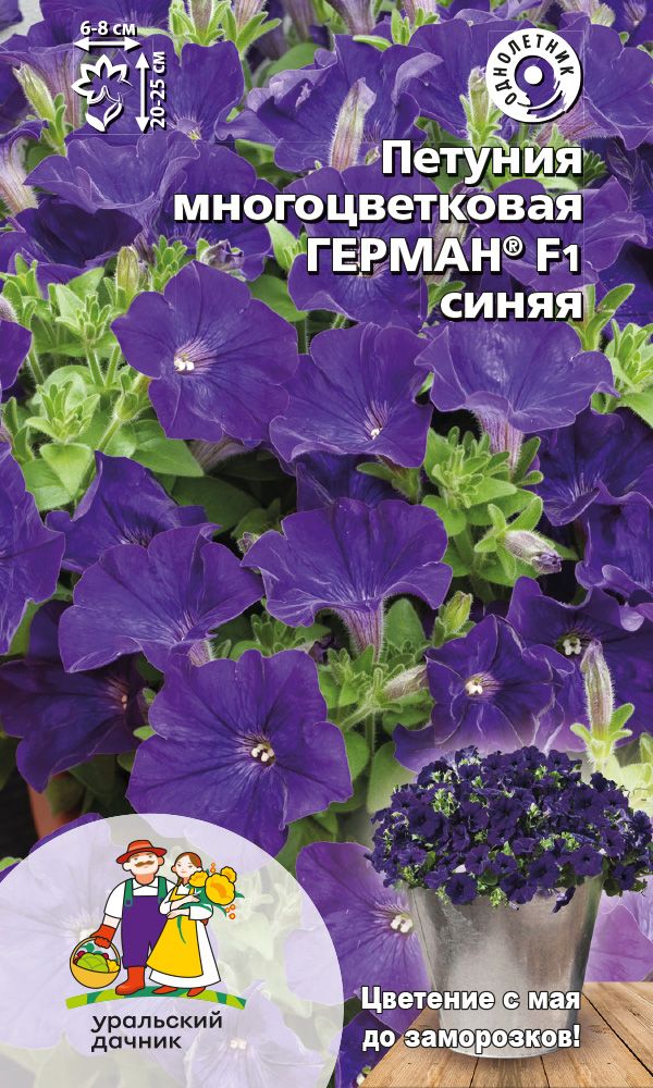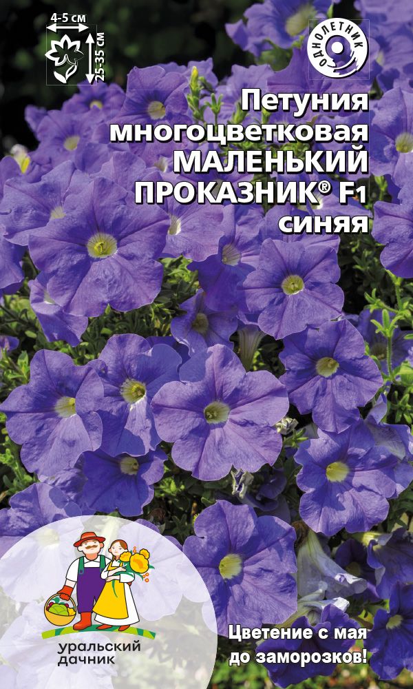 Цветение продолжается с мая до первых заморозков!Эта смесь отечественных гибридов многоцветковой петунии от Селекционно-семеноводческой станции «Устиново» отличается ранним и обильным цветением. Клумбы с этими растениями напоминают океан цветов тёмно-синего и...
