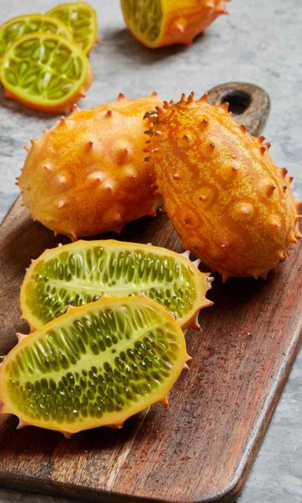 По содержанию калия плоды кивано не имеют себе равных, что позволяет рекомендовать эту культуру для диетического питания больным с заболеваниями сердечнососудистой системы. Мякоть кивано светло-зелёного цвета, сочная, со слабовыраженным вкусом незрелого арбуза с...