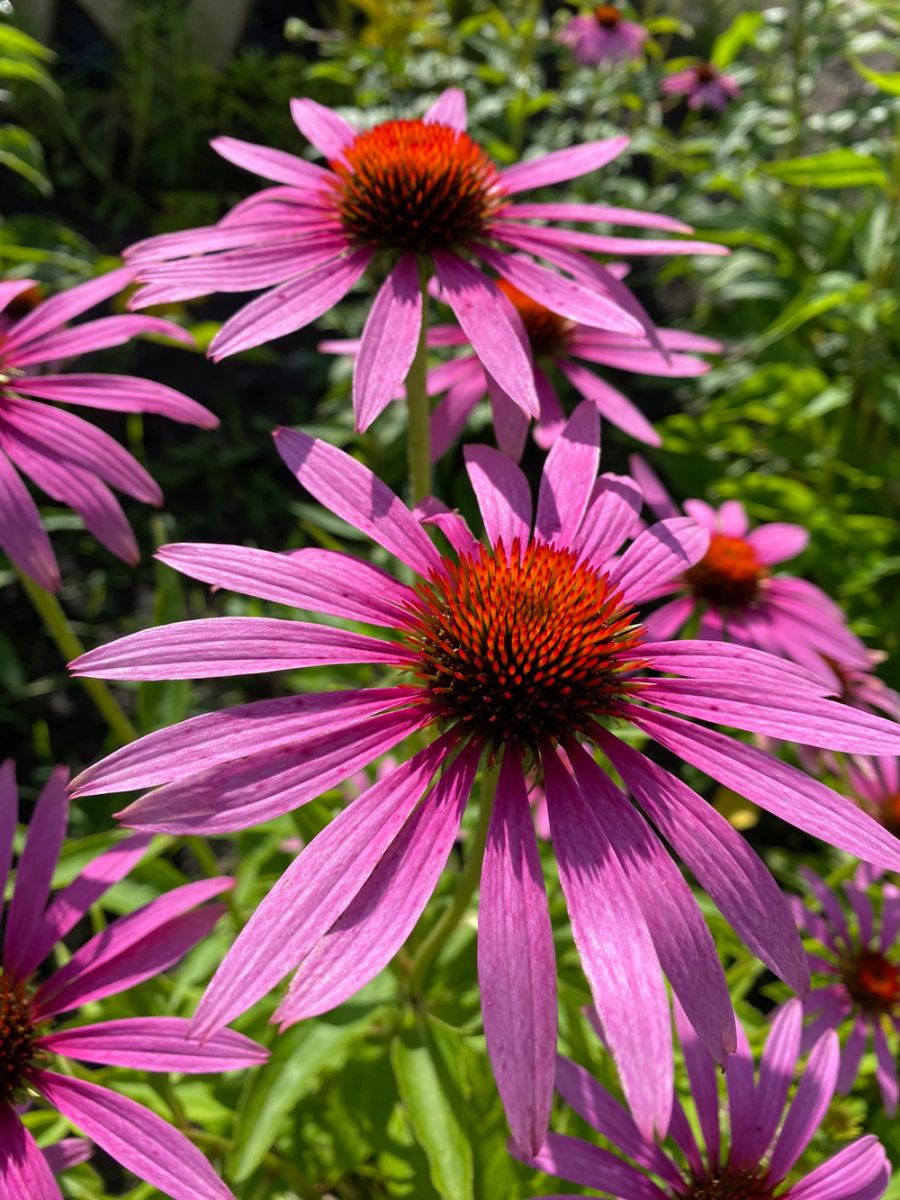 Многолетнее травянистое растение высотой 100 см, диаметром 75 см, прямостоячее. Стебли мощные, слабоопушенные. Листья тёмно-зелёные, широколанцетовидные, длиной 10 см, опушенность средняя. Соцветие - корзинка, диаметром 7,0-7,5 см, язычковые цветки розовые, трубчатые - коричневые. Окраска бледнеет к концу цветения. Аромат слабо-приятный. Цветение по сроку среднее, до осени, среднее количество цветков 15 шт. В качестве лекарственного сырья используют цветочные корзинки (заготавливают в июле-августе) и корневища с корнями (заготавливают поздней осенью).