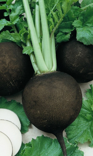 Самый популярный сорт для хранения! Корнеплод плоскоокруглый, чёрный, массой до 550 г, мякоть белая, плотная, сочная, слабоострая.Посев: семена начинают прорастать при температуре 2 градуса. Растение светолюбивое. Летние сорта сеют в начале мая, а зимние - в начале июля. Схема посадки 30 х 10 см. Глубина посева 1-2 см. Первое прореживание в стадии 1-2 настоящих листьев. Далее требуется регулярный полив, рыхление, прополка...