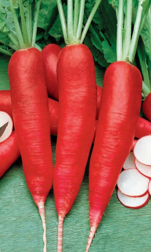 Высокоурожайный среднеспелый сорт, сочетающий в себе прекрасные вкусовые и диетические качества, высокую урожайность и быстрый рост. Корнеплод выравненный, длинный, цилиндрической формы, с тонкой, чёрной кожурой. Мякоть белая, нежная, хрустящая, слабоострого вкуса. Идеальна для салатов, отлично хранится...