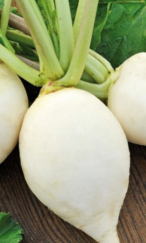Очень урожайный, среднеспелый сорт. Корнеплоды белые, округлые, с гладкой, ровной поверхностью, достигают массы 200-450 г, отличаются белой, сочной, нежной мякотью остро-сладкого вкуса, которая придаст пикантность свежим салатам.Ценность сорта: холодостойкость, отличная лёжкость в период зимнего хранения. Погружена в почву полностью. Рекомендуется для потребления в свежем виде в осенне-зимний период...