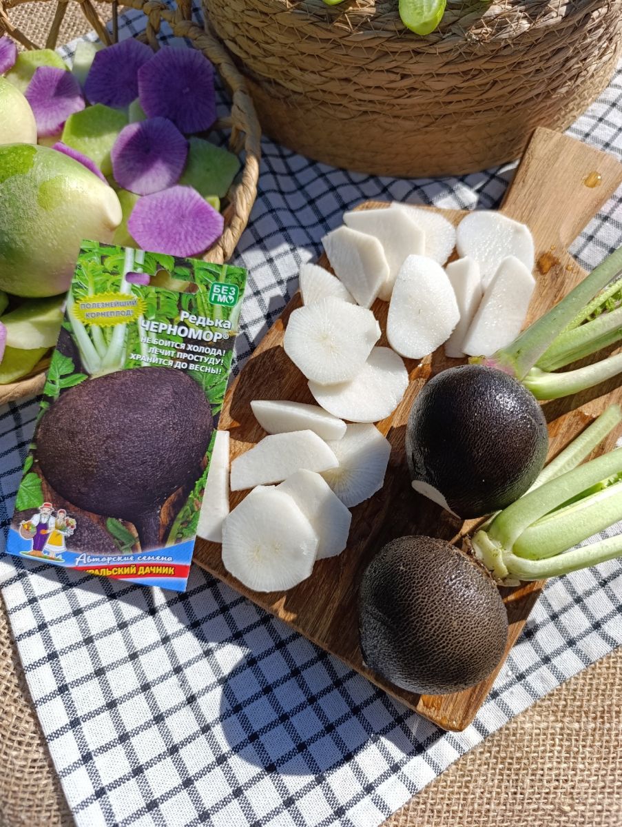 Самый популярный сорт для хранения! Корнеплод плоскоокруглый, чёрный, массой до 550 г, мякоть белая, плотная, сочная, слабоострая.Посев: семена начинают прорастать при температуре 2 градуса. Растение светолюбивое. Летние сорта сеют в начале мая, а зимние – в начале июля. Схема посадки 30 х 10 см. Глубина посева 1-2 см. Первое прореживание в стадии 1-2 настоящих листьев. Далее требуется регулярный полив, рыхление, прополка...