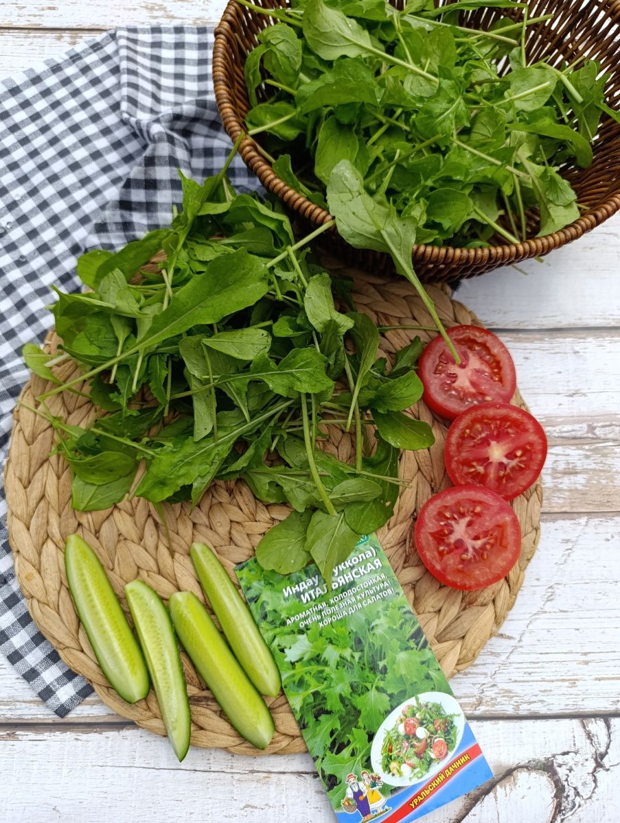 Скороспелый сорт. Популярная в последнее время зелень руколы нравится гурманам и ценителям итальянской кухни за свой очень приятный горчично-оливковый вкус, который так выгодно оттеняет морепродукты в тёплых салатах или добавляет в салат из свежих овощей свой особенный акцент. Несомненным достоинством этой зеленной культуры является быстрые сроки созревания, всего 20-25 дней проходит от появления всходов до первой уборки урожая. Руккола верный спутник для желающих похудеть, она низкокалорийная, содержит много витаминов группы В, витамин Р, способствует нормализации пищеварения.