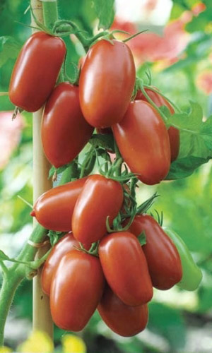 Среднеспелый сорт российской селекции. Полудетерминантный, высота растения 160-180 см. В кисти до 18 плодов оригинальной коричневой окраски. Плоды сливовидные, толстостенные, очень сладкие, массой 60-65 г.Вкусовые качества отличные. Урожайность – 4,8-5,3 кг/м2. Рекомендуется для выращивания в открытом грунте и под плёночными укрытиями. Для использования в свежем виде и цельноплодного консервирования...