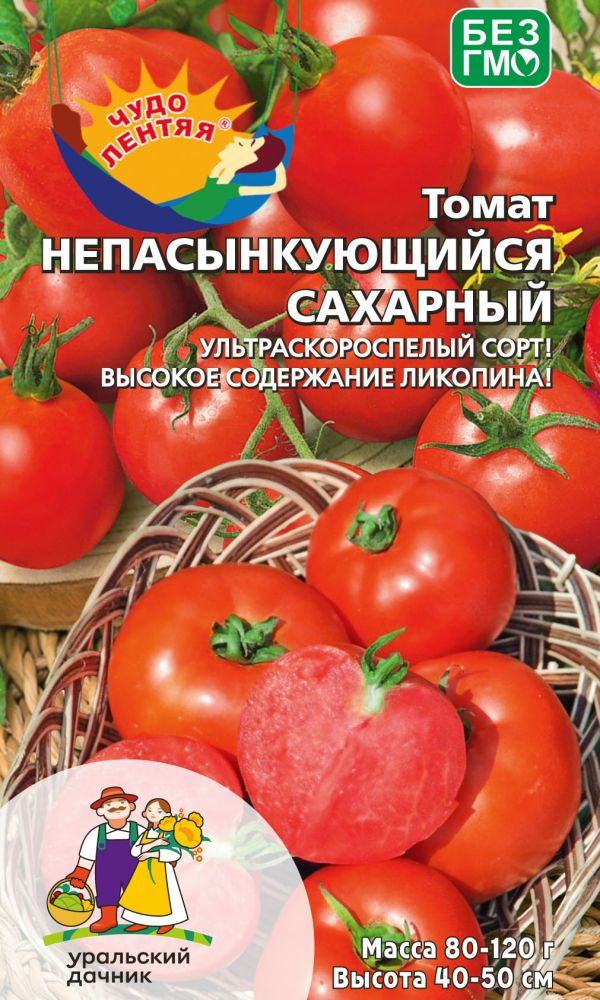 Скороспелый, супернеприхотливый сорт. Растение детерминантное, высотой 50-60 см, не требует пасынкования. Плоды плоскоокруглые, красные, массой 50-80 г, сочные, с повышенным содержанием витаминов и ликопина. Ценность сорта: ранняя и дружная отдача урожая, неприхотливость выращивания, устойчивость к неблагоприятным погодным условиям. Рекомендуется для употребления в свежем виде, приготовления соков, для засолки и консервирования...