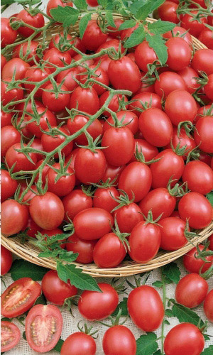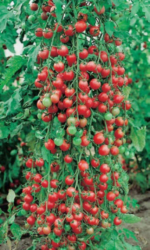 Скороспелый, сказочно урожайный сорт – черри для теплиц и парников. Растение высотой около 2 м, в кисти формируется свыше 30 сливовидных плодов красной окраски, массой 15-20 г.Ценность: высокая завязываемость плодов (95-100 %), дружное плодоношение, выравненность плодов, устойчивость к растрескиванию, прекрасная лёжкость (более 30 дней). Рекомендуется для потребления в свежем виде, засолки и цельноплодного консервирования...