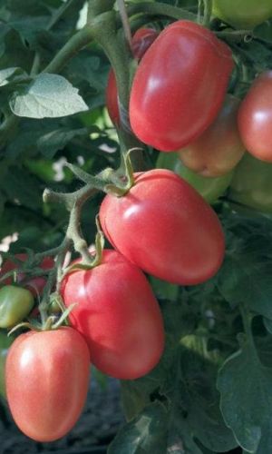 Розовая окраска плода сочетается с отличными вкусовыми качествами. Для открытого грунта. Среднеспелый сорт. Период от всходов до начала созревания 110-125 дней. Растение высотой 60-70 см. Плоды удлинённо-овальные, массой 80-115 г. В кисти 5-6 плодов. Сорт устойчив к комплексу болезней. Универсальное использование...