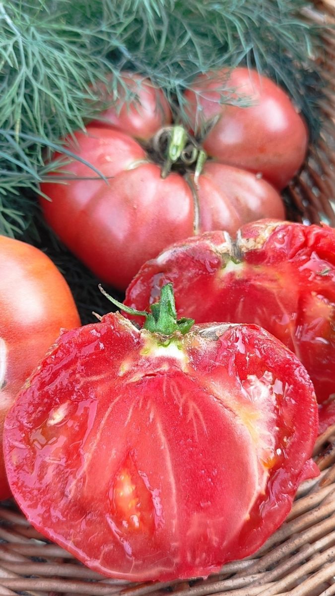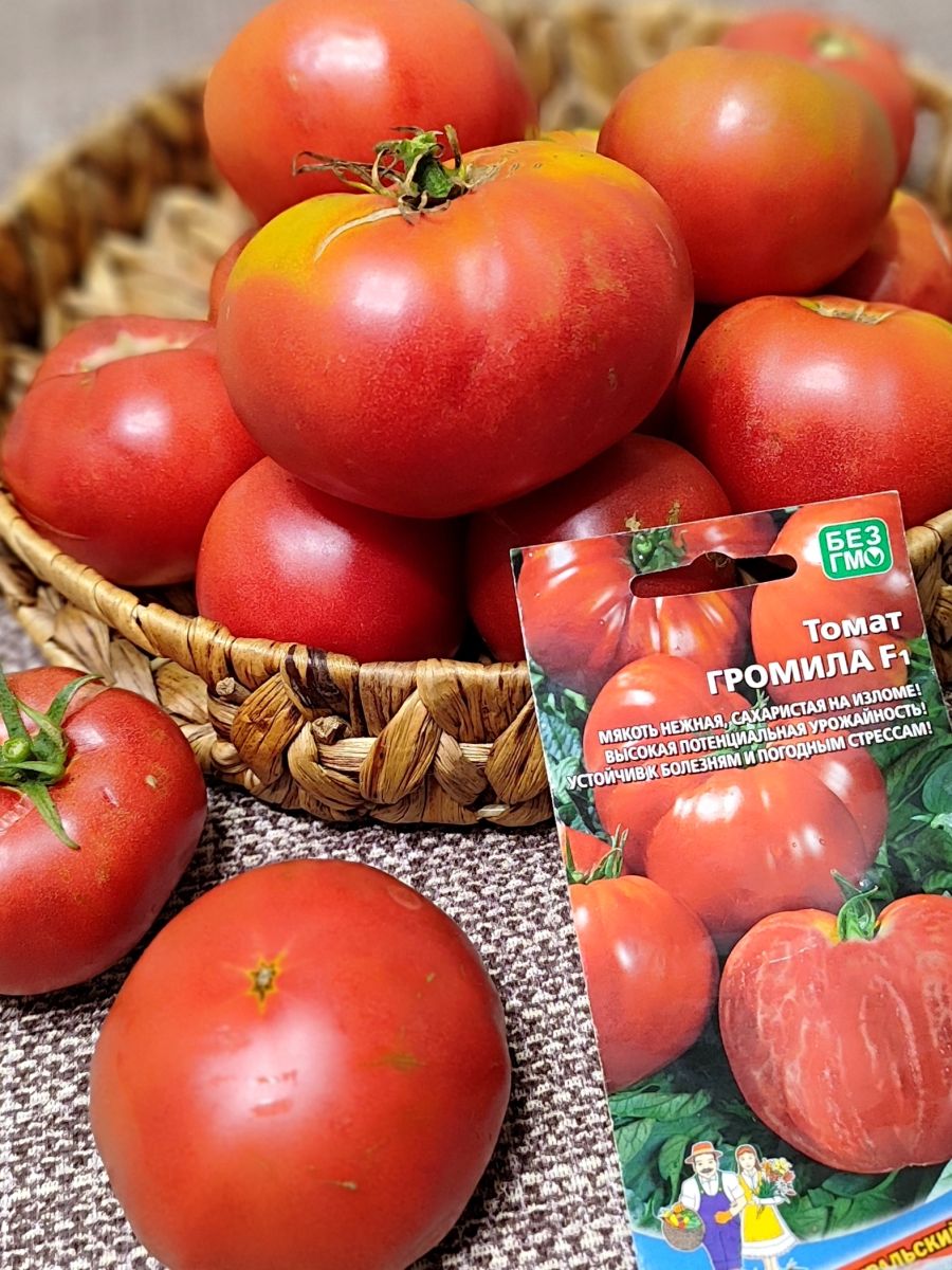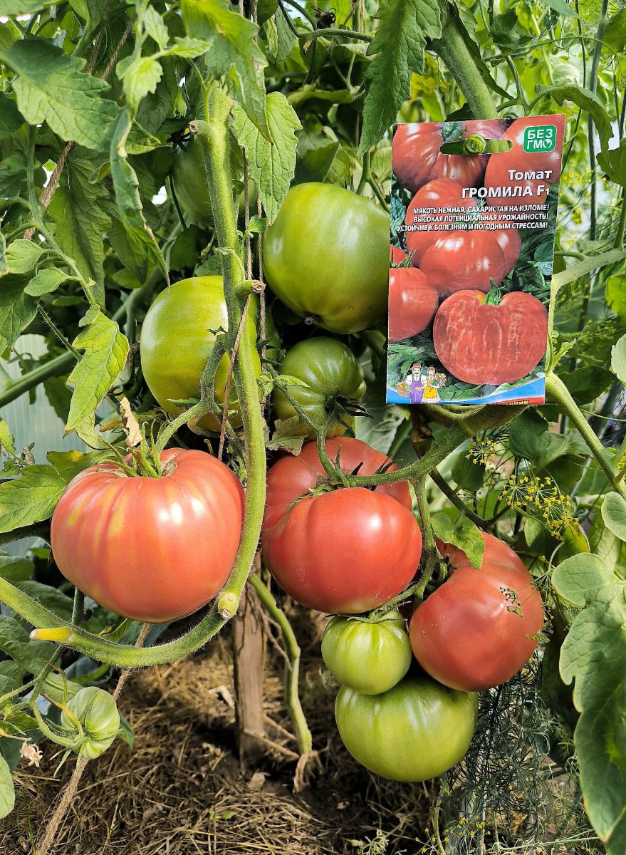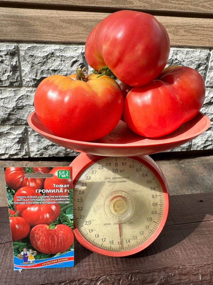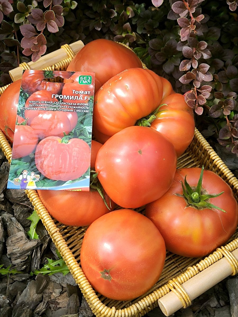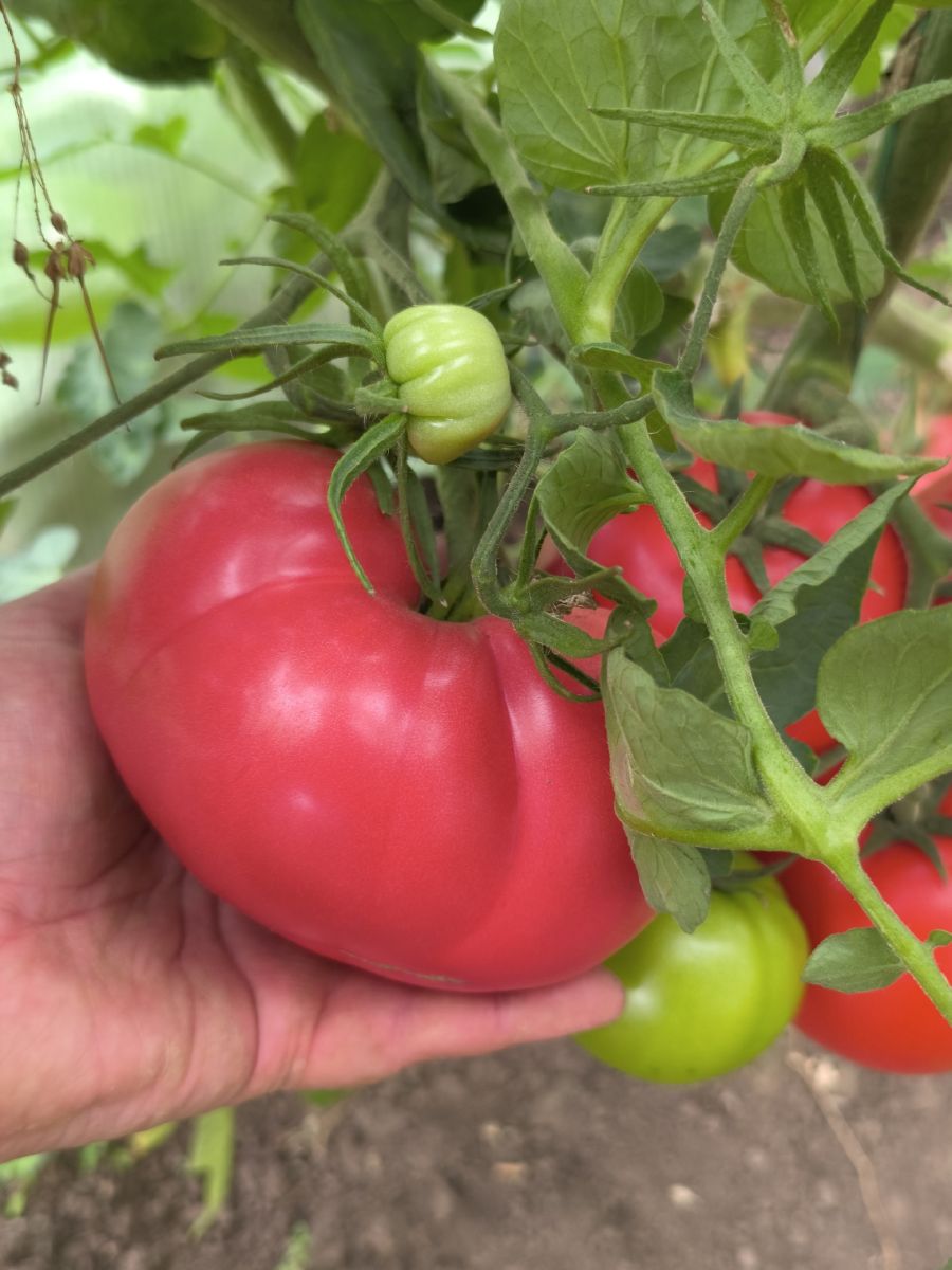 Раннеспелый крупноплодный гибрид для открытого грунта. Достоинством гибрида является крупноплодность в сочетании с низкорослым типом куста, его высота составляет 50-70 см. Плоды густо-розового цвета уплощенно-сердцевидной формы, массой до 500 г. Томаты вкусные, великолепно подходят для салата и зимних заготовок. Возможно выращивание гибрида без пасынкования, но для получения более крупных плодов требуется частичное пасынкование.