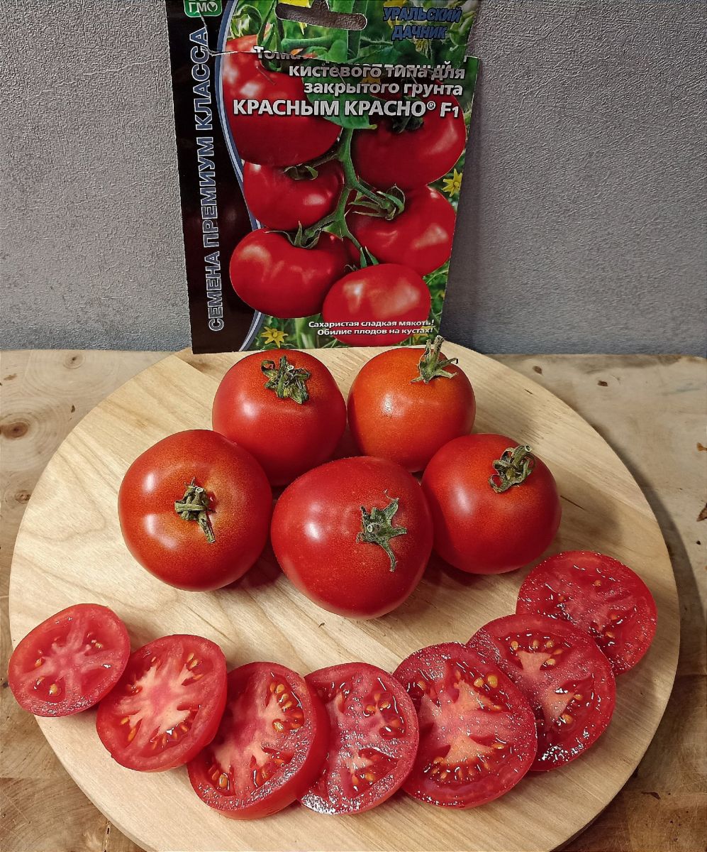 Отличительные особенности: уникальный вкус, мякоть сахарная на изломе, зернистая как у арбуза. Даже в холодное лето, когда с обычных томатов цветы гроздями осыпаются из-за длительного ненастья, «Красным красно F1» будет упорно кисть за кистью, завязывать крупные, красивые плоды. Новейший гибрид не только устойчив к экстремальным погодным условиям, но и, кроме того, застрахован от многих болезней. Урожайность достигает 25 кг вкуснейших томатов с одного м2.