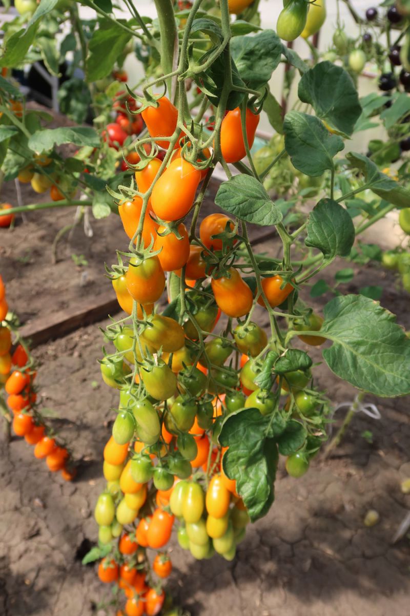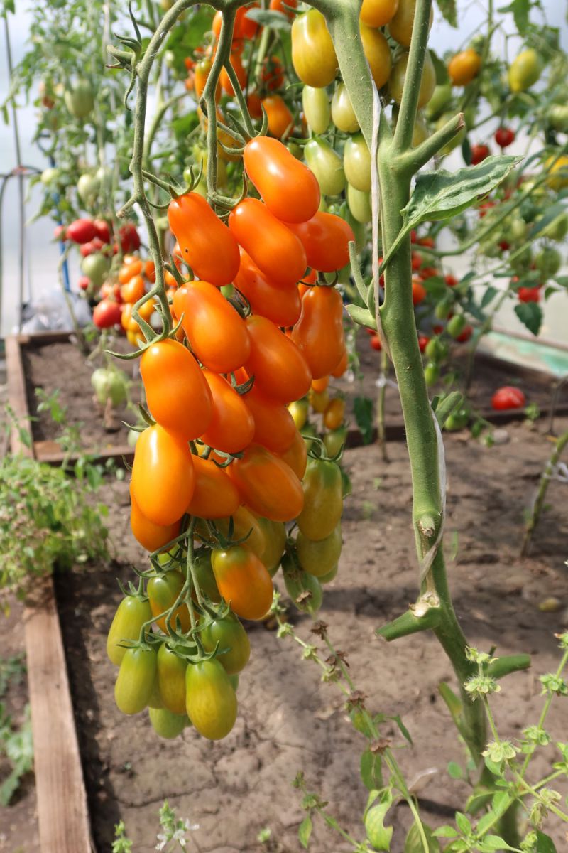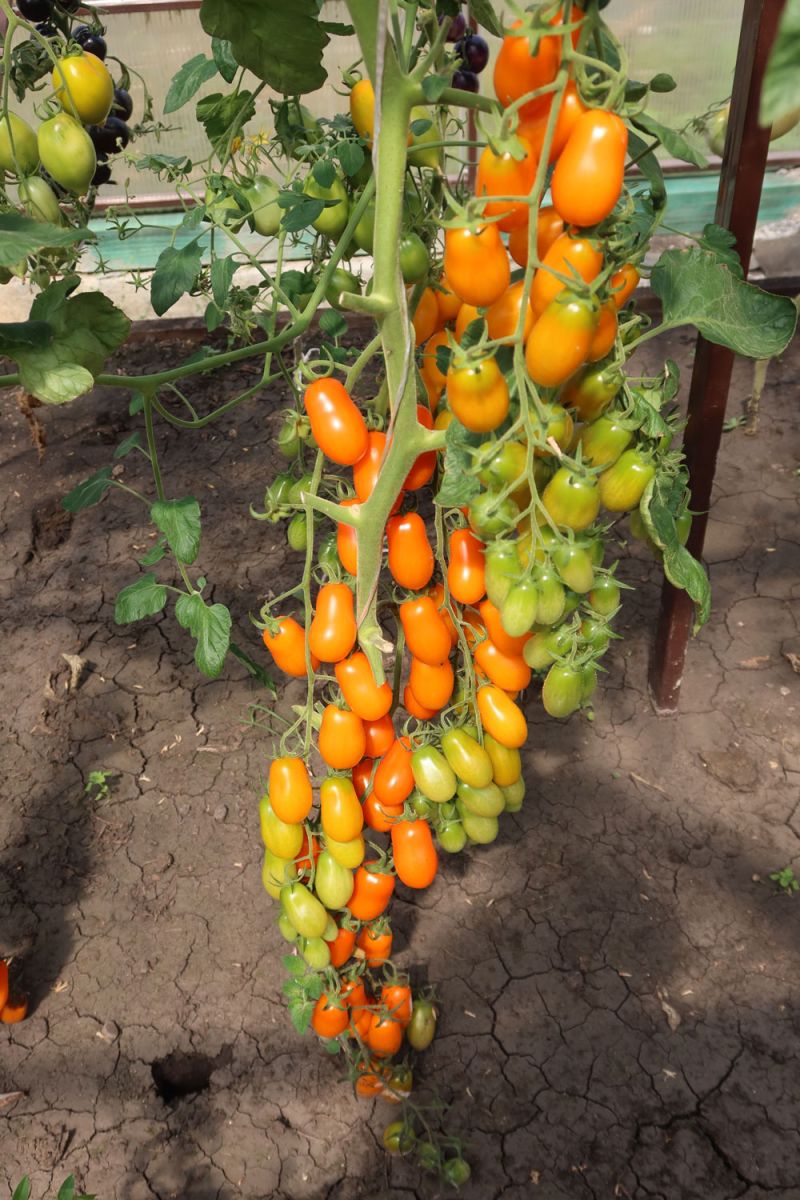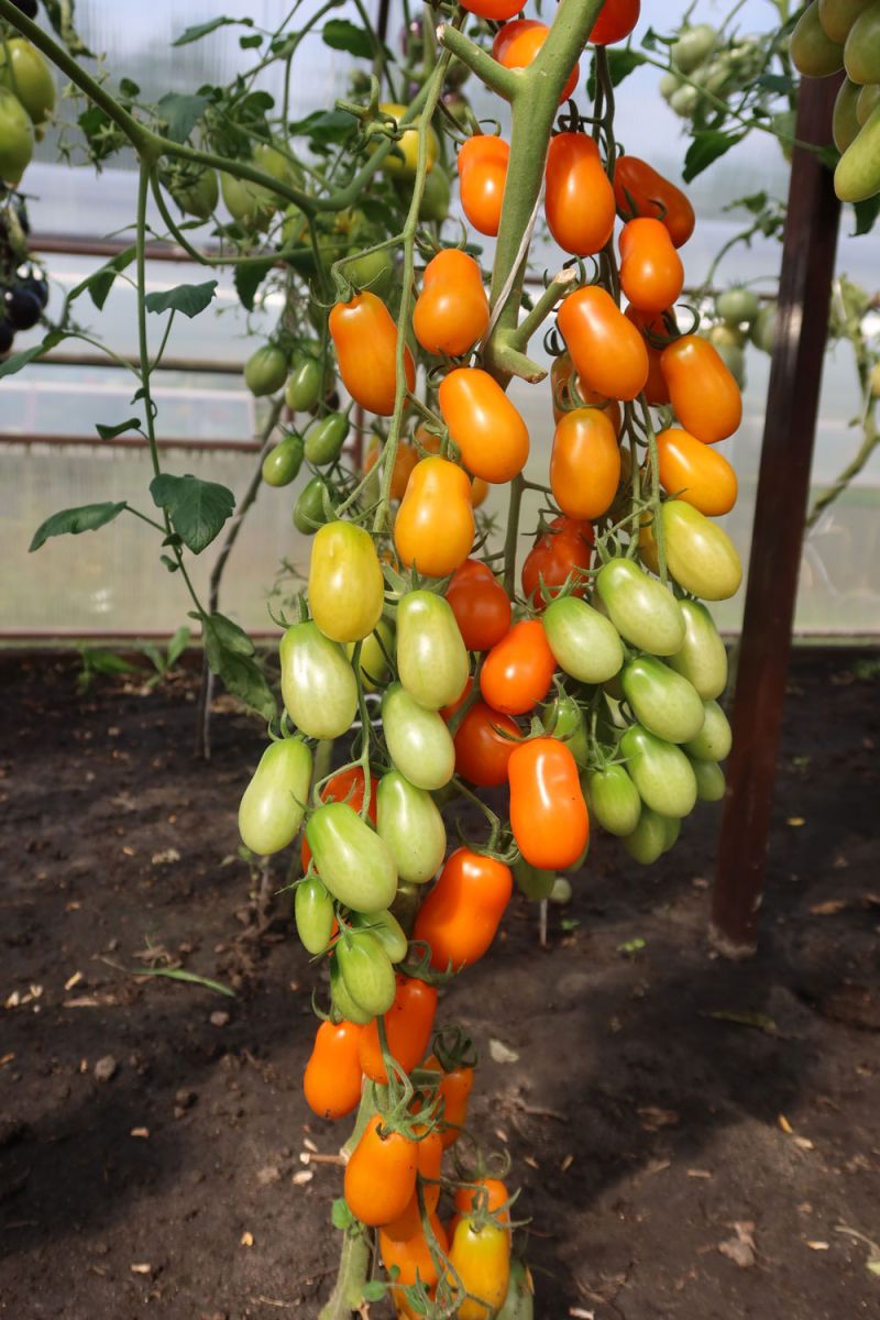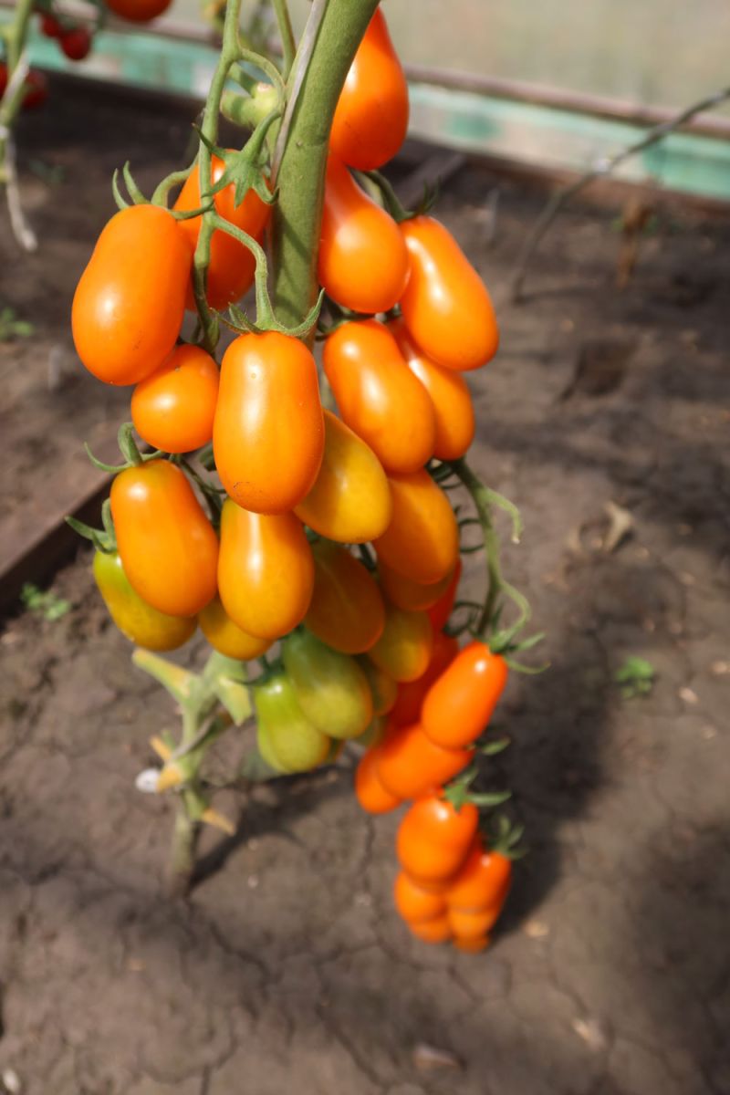 Очаровательно красивый и невероятно плодовитый индетерминантный томат черри. Вытянутые, как крохотные «дамские пальчики», сочно оранжевые помидорки с плотной мякотью отличного, очень сладкого вкуса. Если закрыть глаза, то можно представить, что кушаешь фрукт. На каждой кисти 20-25 плодов, которые не трескаются и не опадают, так что урожай можно собирать целыми кистями. Подходит для открытого грунта, плёночных теплиц и для выращивания в больших горшках на балконе. Устойчив к самым распространённым болезням томатов.